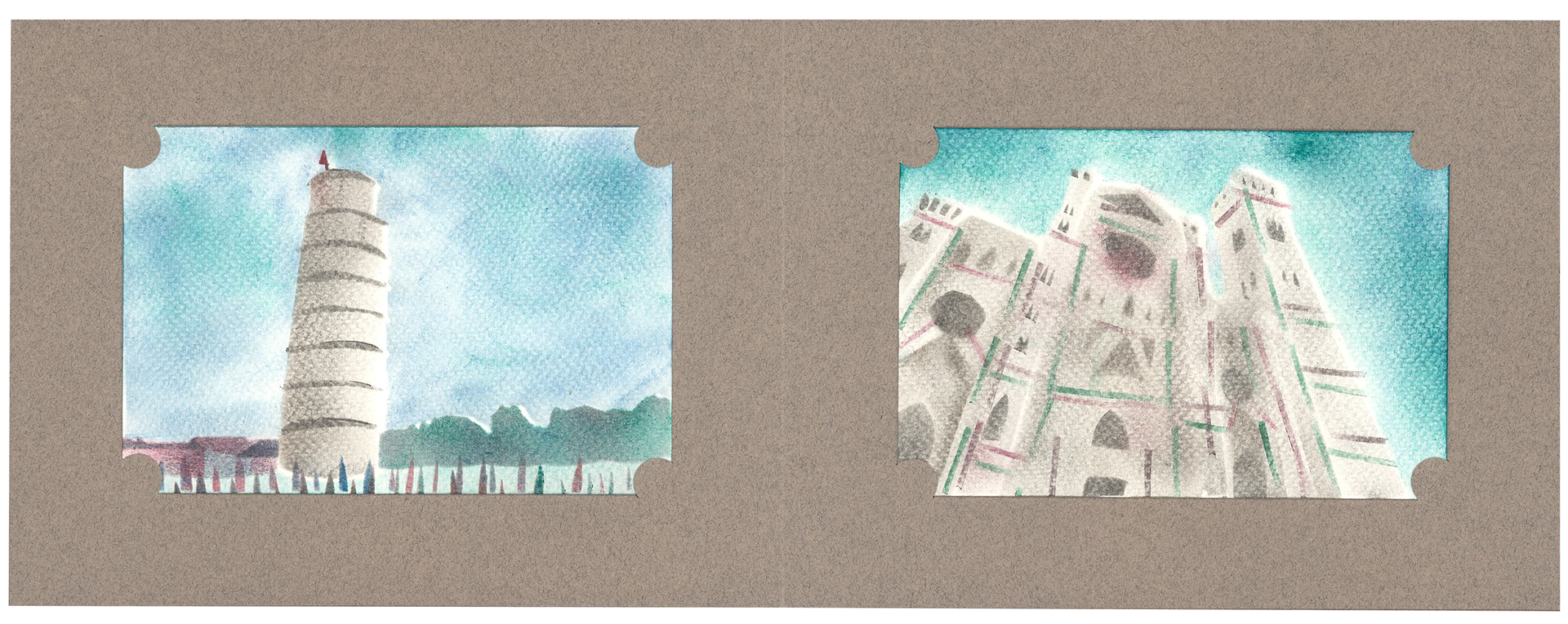 Florence is You - pochoir printed postcards of scenes from Italy
