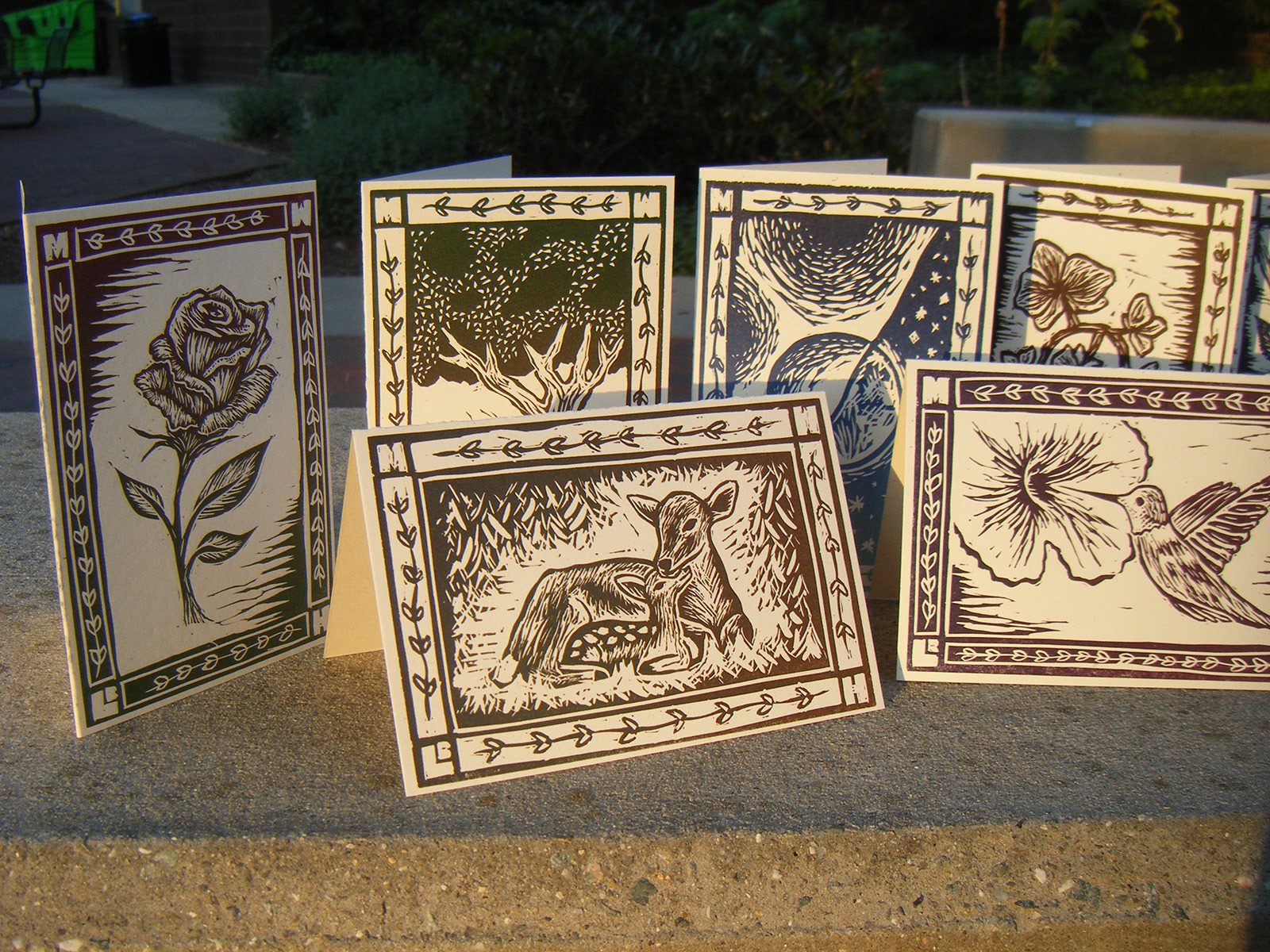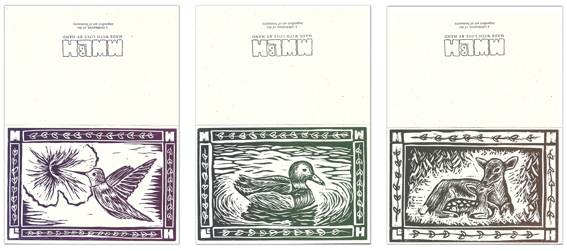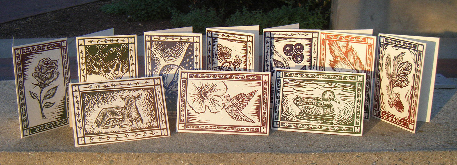 Set of 10 branded greeting cards - linocut, letterpress printed, all with love by hand.